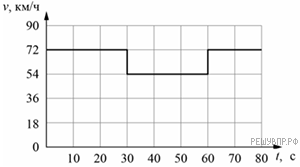 Согласно инструкции для машинистов, если локомотив или хотя бы один вагон поезда движется по мосту, скорость поезда не должна превышать 60 км/ч. Машинист вёл поезд, строго выполняя инструкцию. На рисунке показан график зависимости скорости υ движения поезда от времени t.