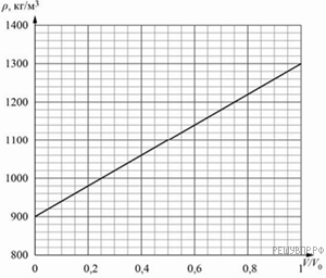 Строители в Заполярье иногда используют в качестве строительного материала ледобетон. Так называют лёд с вмороженной в него галькой. Ледобетон настолько прочен, что при работе с ним нередко ломаются даже стальные зубья экскаваторов. На рисунке изображён график зависимости средней плотности ρ блока ледобетона от соотношения V/V0 (здесь V — объём гальки в блоке, V0 — общий объём блока).